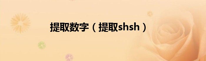 大家好,麟非来为大家解答以上问题,提取数字,提取shsh很多人还不知道,现在让我们一起来看看吧!