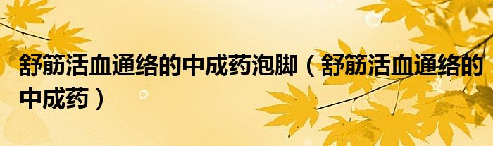 舒筋活血通络的中成药泡脚(舒筋活血通络的中成药)
