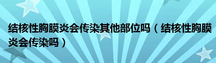 结核性胸膜炎会传染其他部位吗(结核性胸膜炎会传染吗)