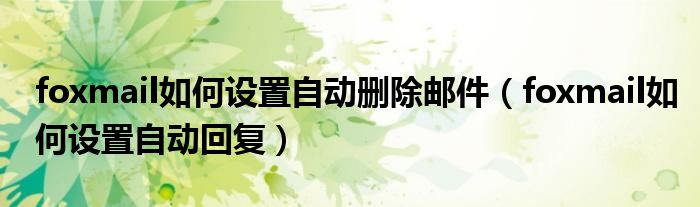 foxmail如何设置自动删除邮件(foxmail如何设置自动回复)