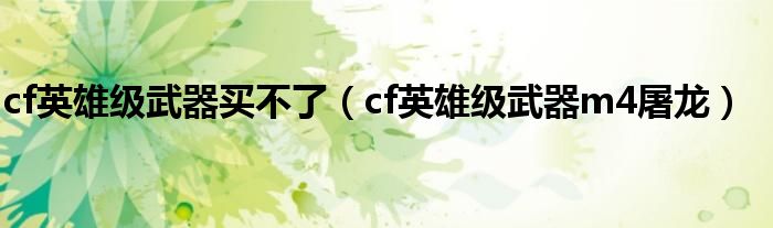 大家好,麟非来为大家解答以上问题,cf英雄级武器买不了,cf英雄级武器m4屠龙很多人还不知道,现在让我们一起来看看吧!