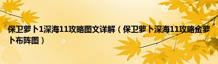 导读 大家好,麟非来为大家解答以上问题,保卫萝卜1深海11攻略图文详解,保卫萝卜深海11攻略金萝卜布阵图很多人还不知道,现在让我们一起来看看