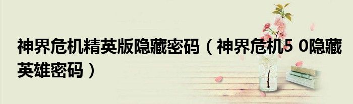 神界危机精英版隐藏密码(神界危机5 0隐藏英雄密码)