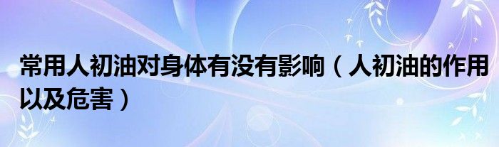 大家好,linda来为大家解答以上的问题。常用人初油对身体有没有影响,人初油的作用以及危害很多人还不知道,现在让我们一起来看看吧!