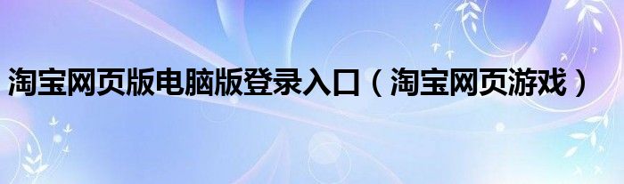 淘宝网页版电脑版登录入口(淘宝网页游戏)