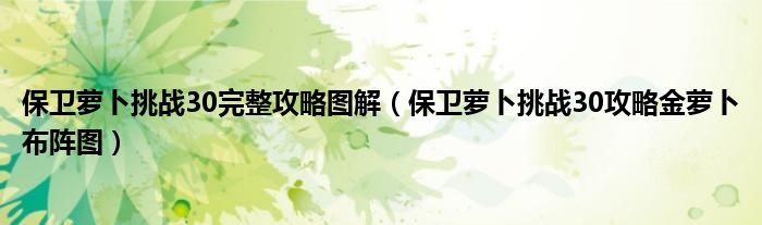 导读 大家好,麟非来为大家解答以上问题,保卫萝卜挑战30完整攻略图解,保卫萝卜挑战30攻略金萝卜布阵图很多人还不知道,现在让我们一起来看看吧