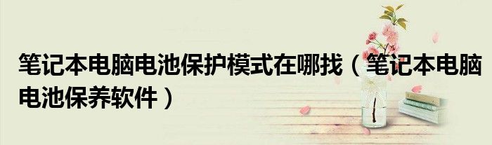 笔记本电脑电池保护模式在哪找(笔记本电脑电池保养软件)