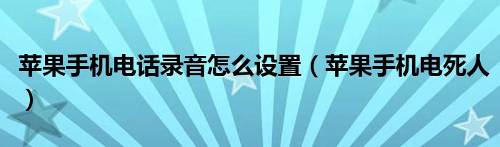苹果手机电话录音怎么设置(苹果手机电死人)