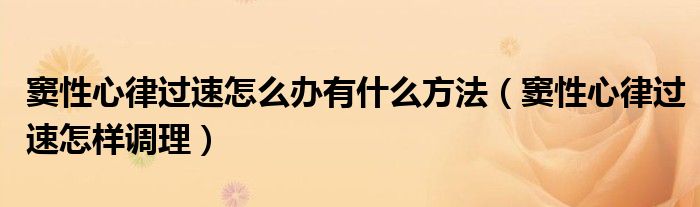 窦性心律过速怎么办有什么方法(窦性心律过速怎样调理)