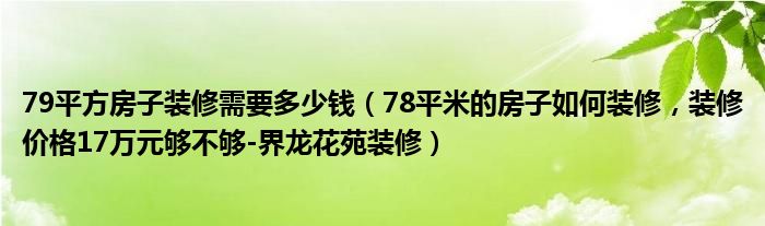 79平方房子装修需要多少钱(78平米的房子如何装修,装修价格17万元够不够-界龙花苑装修)