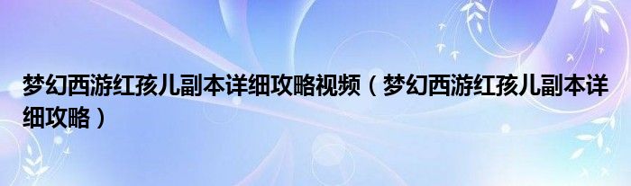 梦幻西游红孩儿副本详细攻略视频(梦幻西游红孩儿副本详细攻略)