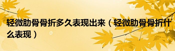 轻微肋骨骨折多久表现出来(轻微肋骨骨折什么表现)