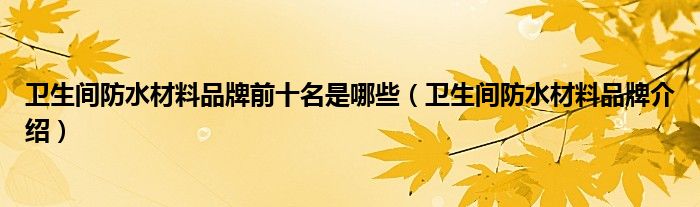卫生间防水材料品牌前十名是哪些(卫生间防水材料品牌介绍)