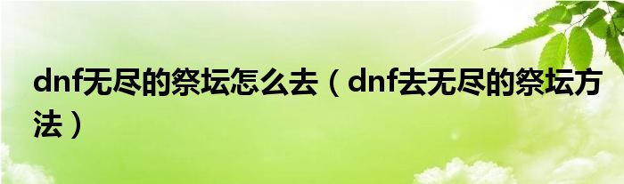 dnf无尽的祭坛怎么去(dnf去无尽的祭坛方法)