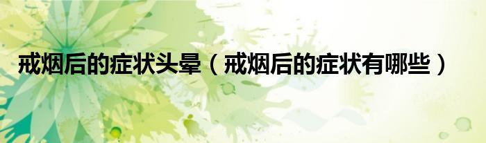 戒烟后的症状头晕(戒烟后的症状有哪些)