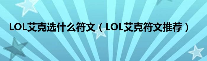 LOL艾克选什么符文(LOL艾克符文推荐)