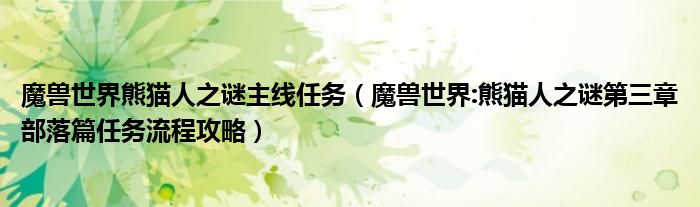 魔兽世界熊猫人之谜主线任务(魔兽世界:熊猫人之谜第三章部落篇任务流程攻略)