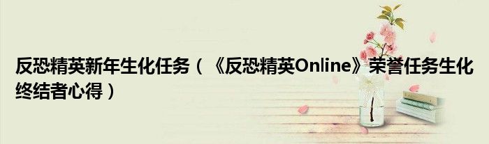 大家好,太太来为大家解答以上问题。反恐精英新年生化任务,《反恐精英Online》荣誉任务生化终结者心得很多人还不知道,现在让我们一起来看看吧!