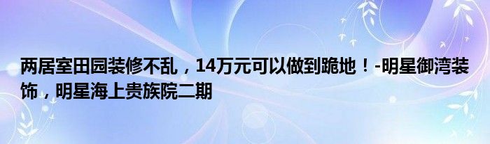 导读 大家好,今天乐乐来为大家解答以上问题。两居室田园装修不乱,14万元可以做到跪地!-明星御湾装饰,明星海上贵族院二期很多人还不知道,现