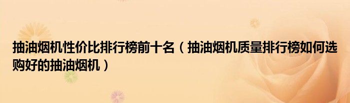 抽油烟机性价比排行榜前十名(抽油烟机质量排行榜如何选购好的抽油烟机)