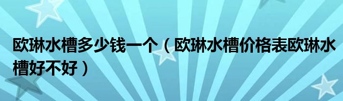 欧琳水槽多少钱一个(欧琳水槽价格表欧琳水槽好不好)
