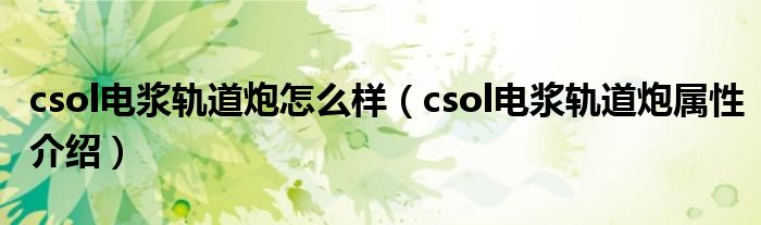 csol电浆轨道炮怎么样(csol电浆轨道炮属性介绍)