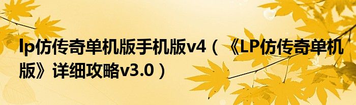lp仿传奇单机版手机版v4(《LP仿传奇单机版》详细攻略v3.0)