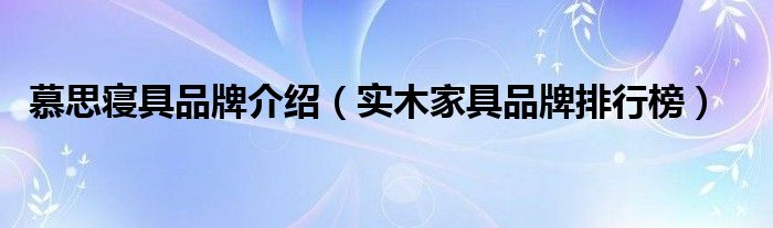慕思寝具品牌介绍(实木家具品牌排行榜)