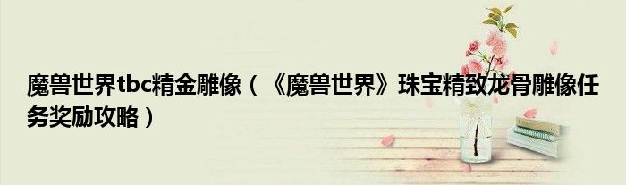 导读 大家好,太太来为大家解答以上问题。魔兽世界tbc精金雕像,《魔兽世界》珠宝精致龙骨雕像任务奖励攻略很多人还不知道,现在让我们一起来看