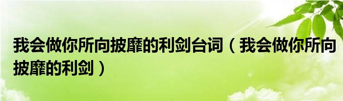 导读 大家好,今天麟非来为大家解答以上问题,我会做你所向披靡的利剑台词,我会做你所向披靡的利剑很多人还不知道,现在让我们一起来看看吧!1