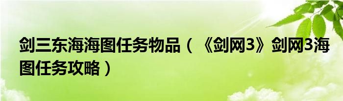 剑三东海海图任务物品(《剑网3》剑网3海图任务攻略)
