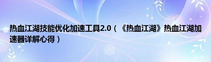 导读 大家好,太太来为大家解答以上问题。热血江湖技能优化加速工具2 0,《热血江湖》热血江湖加速器详解心得很多人还不知道,现在让我们一起来