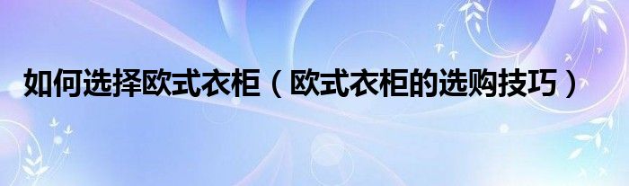 如何选择欧式衣柜(欧式衣柜的选购技巧)