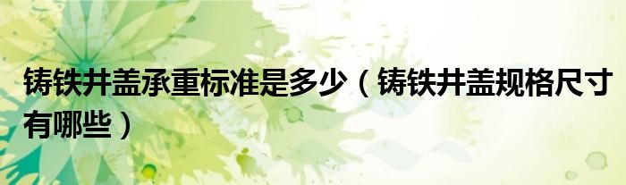 导读 大家好,今天乐乐来为大家解答以上问题。铸铁井盖承重标准是多少,铸铁井盖规格尺寸有哪些很多人还不知道,现在让我们一起来看看吧!铸铁井
