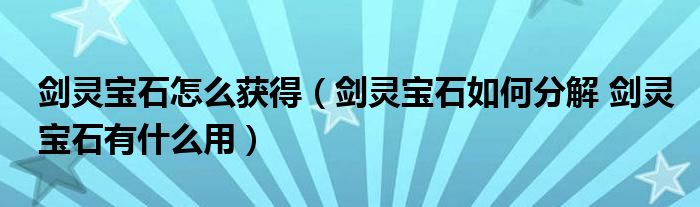 剑灵宝石怎么获得(剑灵宝石如何分解 剑灵宝石有什么用)