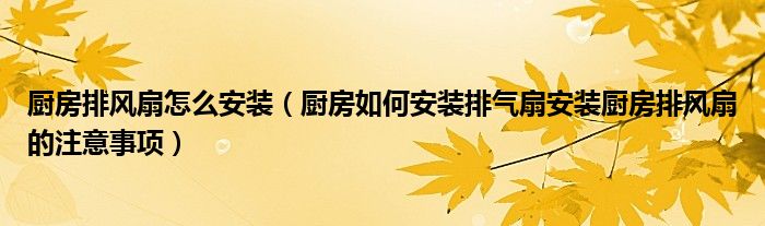 一、厨房如何安装排气扇