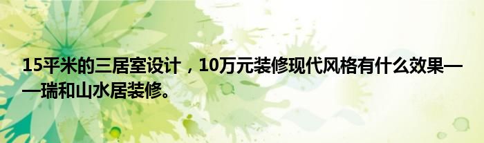 15平米的三居室设计,10万元装修现代风格有什么效果——瑞和山水居装修。