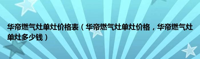 华帝燃气灶单灶价格表(华帝燃气灶单灶价格,华帝燃气灶单灶多少钱)