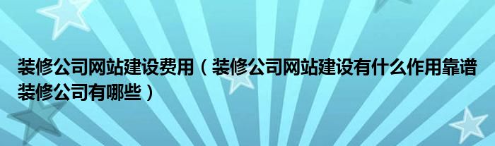 装修公司网站建设费用(装修公司网站建设有什么作用靠谱装修公司有哪些)