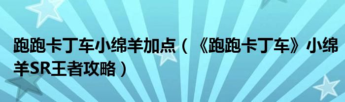 跑跑卡丁车小绵羊加点(《跑跑卡丁车》小绵羊SR王者攻略)
