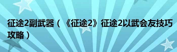 大家好,太太来为大家解答以上问题。征途2副武器,《征途2》征途2以武会友技巧攻略很多人还不知道,现在让我们一起来看看吧!