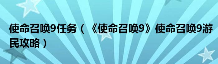 使命召唤9任务(《使命召唤9》使命召唤9游民攻略)