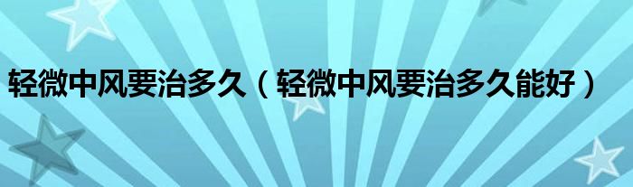 轻微中风要治多久(轻微中风要治多久能好)