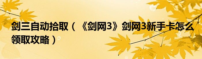 剑三自动拾取(《剑网3》剑网3新手卡怎么领取攻略)