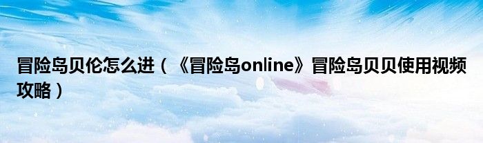 导读 大家好,太太来为大家解答以上问题。冒险岛贝伦怎么进,《冒险岛online》冒险岛贝贝使用视频攻略很多人还不知道,现在让我们一起来看看吧!