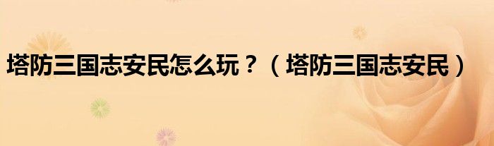 塔防三国志安民怎么玩?(塔防三国志安民)