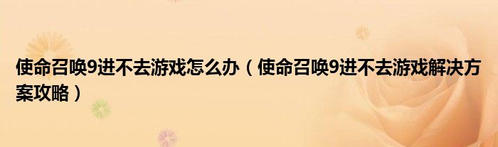 使命召唤9进不去游戏怎么办(使命召唤9进不去游戏解决方案攻略)