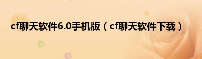 cf聊天软件6.0手机版(cf聊天软件下载)