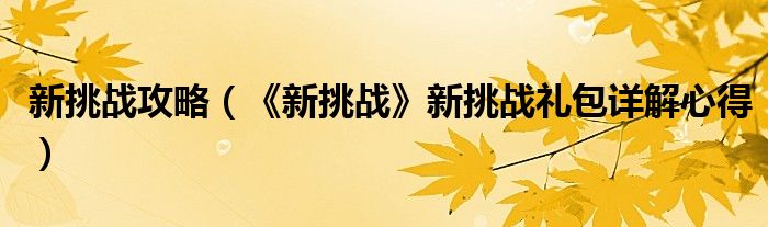 新挑战攻略(《新挑战》新挑战礼包详解心得)
