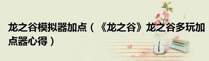 龙之谷模拟器加点(《龙之谷》龙之谷多玩加点器心得)